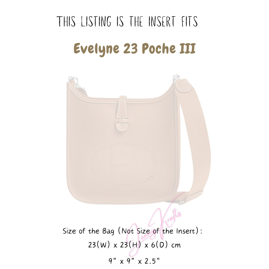 This organizer is designed to fit Evelyne 23 Poche III. If you have other model of Hermes, or if you prefer other designs, please search our store for other options.