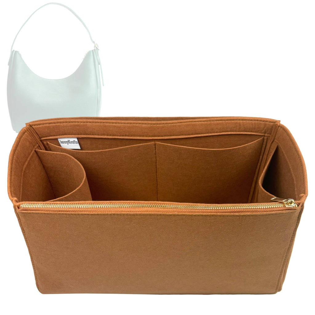 Organizer for [Medium Aspen Shoulder Bag, Portland Leather Goods] Bag Insert (Felt, Long Zip and Open Compartment)