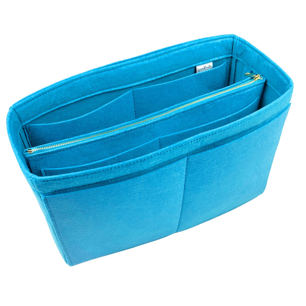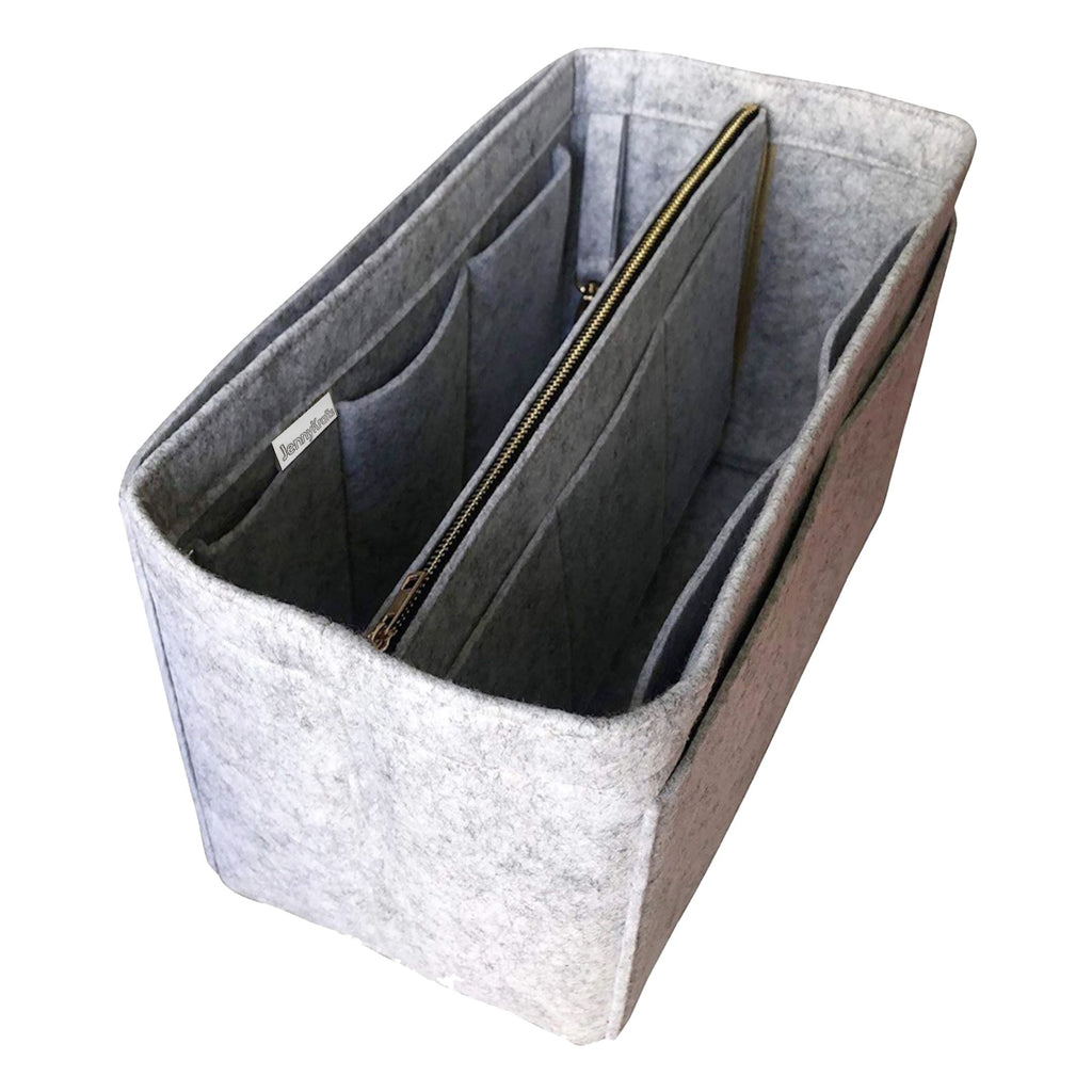 Crafted from premium Felt material, this bag insert provides sturdy support and exceptional protection for your bag interior. It includes a detachable zip pouch in the center, a key hook, a side pocket for your laptop or iPad, and multiple pockets inside and out to hold essentials like cards and phones. If you are interested in extra items such as top zip cover and water bottle holder, you can select these options when placing your order. Weighing just 200 grams, it is lightweight and will not add unnecessary bulk. The high-quality Felt material ensures durability while preventing any color transfer to your bag lining.